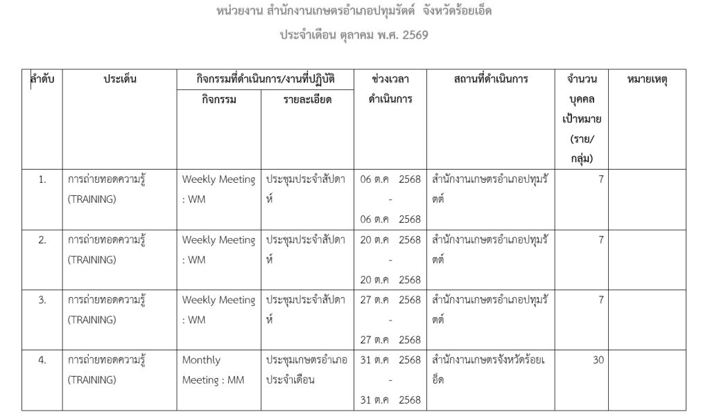 แผนปฏิบัติงาน T&V เดือน ตุลาคม 2568